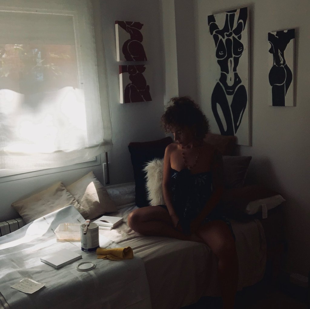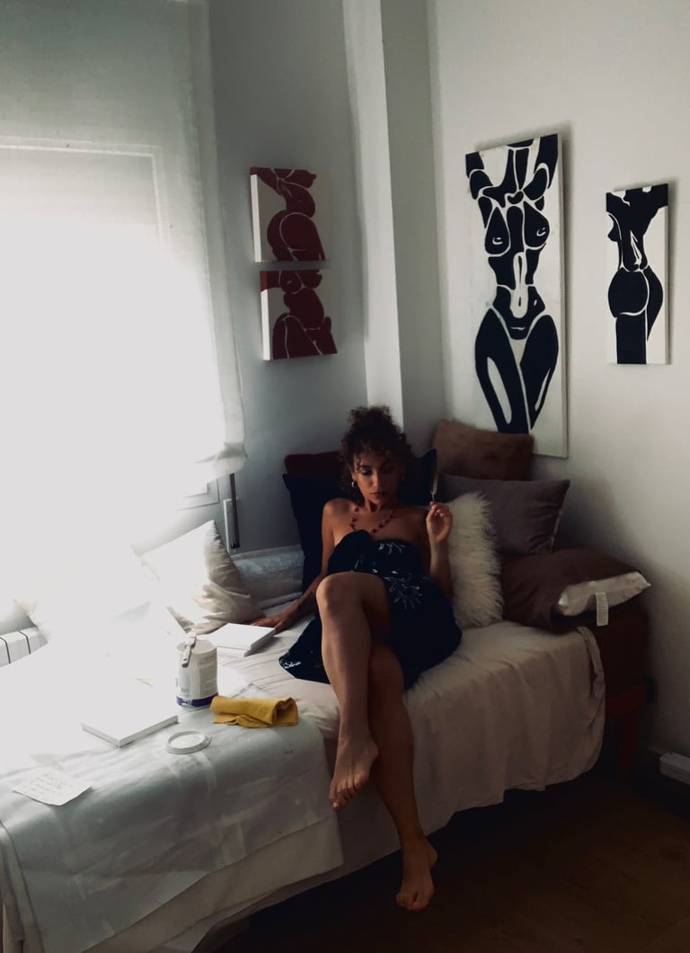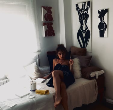 Pintar siempre ha sido una terapia para mí, pero con la serie "Las Nines", algo cambió profundamente. Al crear estas obras, me sumergí en la exploración de temas que, durante mucho tiempo, había evitado o no había sabido cómo abordar: la feminidad, los ciclos naturales femeninos, la sexualidad y el placer. Cada trazo, cada forma que tomaba vida en el lienzo, era una manera de reconectar con mi cuerpo y de entenderlo desde un lugar de amor y aceptación.
