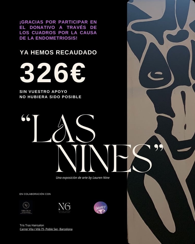 Estoy muy emocionada de compartir el éxito rotundo de la exposición de arte "Las Nines", que recientemente culminó en Tris Tras Hairsalon en Barcelona. Gracias al apoyo y la generosidad de todos ustedes, hemos logrado vender 22 hermosas piezas de la colección, recaudando un total impresionante de 326€ para la lucha contra la endometriosis.