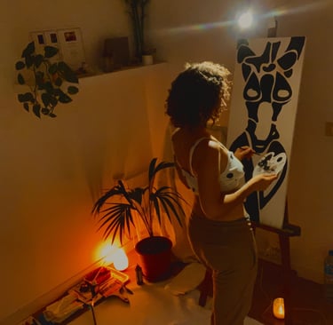 Crear esta colección fue un viaje profundamente personal. Cada cuadro fue una oportunidad para reconectar con lo que significa ser mujer, para honrar la complejidad de nuestras experiencias y para reflejar la belleza de nuestra forma. Me encontré jugando con formas abstractas, líneas curvas, y una paleta de colores que se mantiene simple pero que habla con potencia. El negro y el blanco predominan, simbolizando tanto la dualidad como la armonía que existe dentro de nosotras.