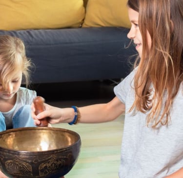 🎶 Herramientas: cuencos tibetanos, tambores suaves, instrumentos melódicos y canto armónico en formato lúdico, mezclados con ejercicios somáticos físicos. El objetivo es que los niños aprendan a conectar más con el momento presente y liberar sobrecargas de su sistema nervioso a través del juego.